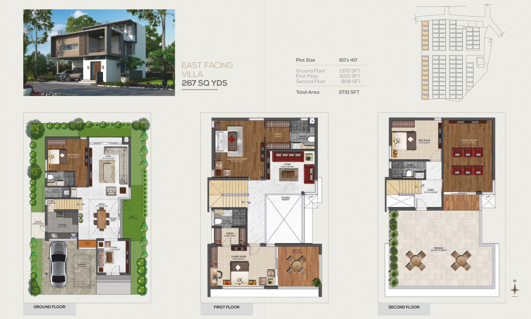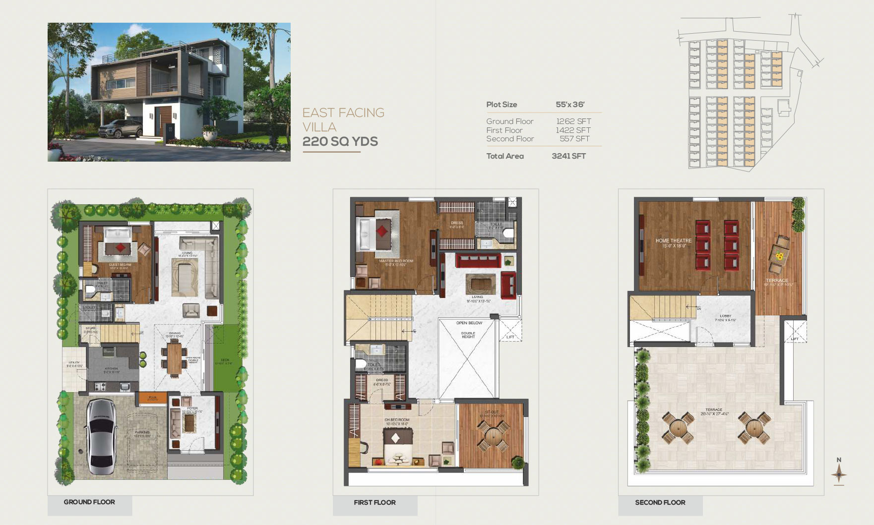 - 27 x 7 DG Backup for all Individual Villas, Club House and Common facilities.